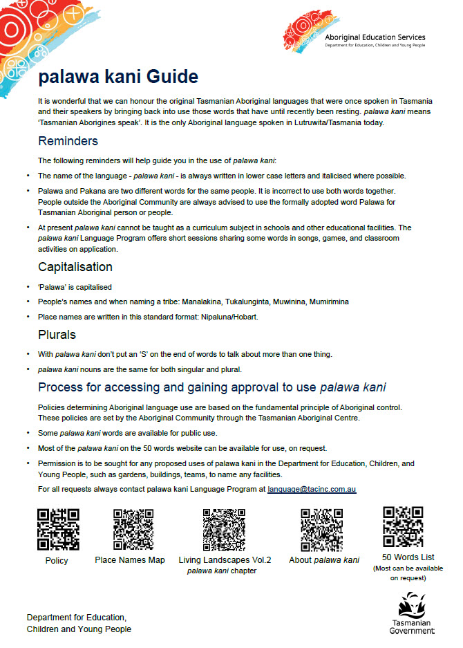 Policy and Protocol for Use of palawa kani Aboriginal Language