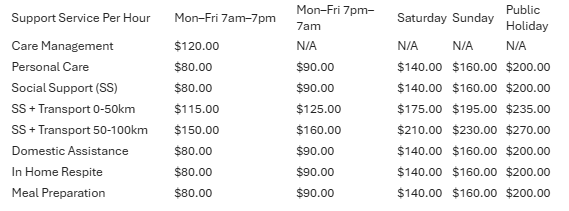 Support at Home Packages Pricing Schedule – November 1st, 2025